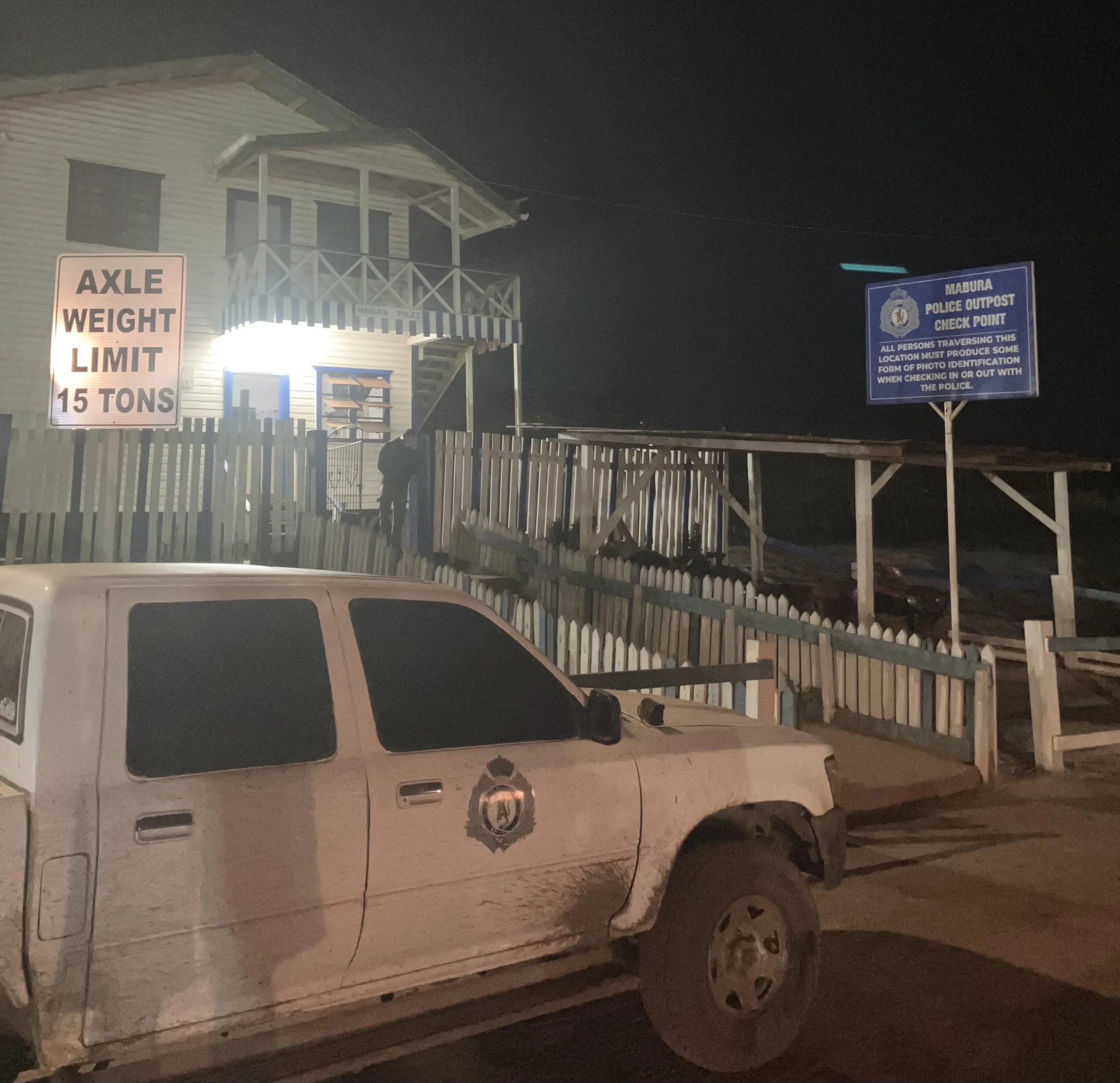 En dan de rit… Het was al donker toen we de stad uit reden, dus erg veel van de omgeving heb ik niet gezien. We stopten in het begin best vaak. Dan voor tanken, dan voor eten halen (ik genoot lekker van m’n dadels), dan drinken halen en noem maar op. Toen we eenmaal in onbewoond terrein kwamen, stopten we alleen maar bij politie stops. En die waren er nog best veel. En wat dus het rare was; ik was de enige die elke keer moest uitstappen om mijn paspoort af te geven en daarbij ook even ondervraagd werd. De rest waren dan wel allemaal Guyanezen, maar dat werd ook maar zomaar aangenomen. En waarom moet ik ondervraagd worden alsof ik illegale dingen ga doen en die anderen zouden dat niet doen? Ik vond het allemaal maar raar, maar gehoorzamen is het enige wat ik kon doen. Bij één van de posts zat er niet netjes een mannetje achter een bureau of iets in die richting, maar hij lag in zijn hangmat met een biertje naast zich op de grond. Dus ik had al zo’n vermoeden en ja hoor… Hij wilde graag mijn nummer. Dus die heb ik toen uiteraard meteen gegeven. Haha, nee, grapje. Ik zei dat ik die niet ging geven en toen zei hij dat hij mijn paspoort niet ging geven. Toen schrok ik natuurlijk wel even, maar gelukkig ging hij toen lachen en gaf hij mijn paspoort terug en daarbij vroeg hij of ik niet met een leuke Guyanees zou willen trouwen. Nee, dankje. Bij dit alles stond onze chauffeur en dit was een jonge gast van, ik denk, rond de 28. En hij had nog geen één keer laten blijken dat hij interesse in mij had, maar we liepen weg van deze politiepost weer richting de auto en toen ging hij in eens raar doen naar me. Was hij aangestoken door deze politie guy? Ik heb het maar gewoon weggelachen en ben weer de auto ingestapt waarbij de stuiterbal op de achterbank meteen zei ‘why do you have a big smile on your face’ en toen zei ik ‘men are horrible’ en toen moest hij heel hard lachen.