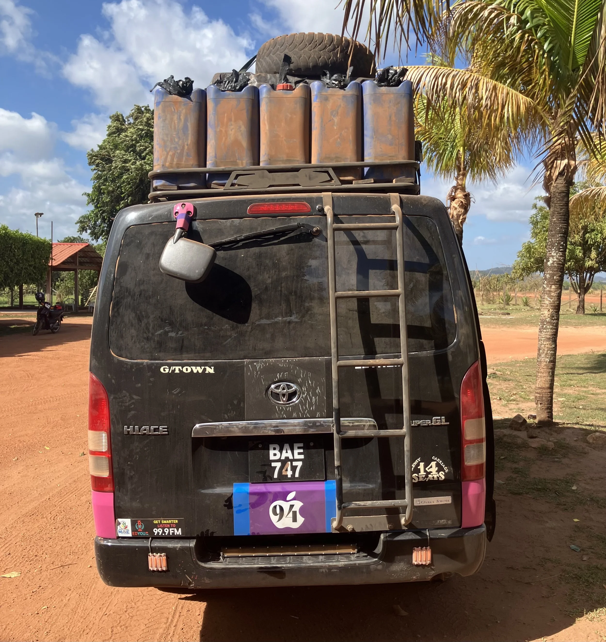 Nou volgend hoofdstuk, hetzelfde begin… Om 15:00 zou de incheck zijn en om 16:00 zouden we vertrekken. We vertrokken uiteindelijk 17:30. Maakt ook allemaal niet uit. Er was een kind die mij heel interessant vond en veel aandacht van me vroeg. Normaal wil ik dat niet van kinderen, maar nu was het een prima tijdverdrijf. Wel was ik even bang dat ik ook met dit kind die bus in zou gaan, want dat zou veel huilen worden en daar had ik echt geen zin in. Gelukkig zat ik niet met deze familie in de bus, maar met wie zat ik dan wel in de bus? Allereerst zat deze bus ook weer vol vol. Er waren drie banken en op elke bank zaten drie mensen. En dan uiteraard nog de chauffeur en bijrijder. Ik zal even de situatie schetsen van de mensen die in de bus zaten. Op de achterste bank zaten drie mannen, drie Guyanese mannen. Waarvan één zo ontzettend veel praatte, maar helaas Creools Engels dus ik verstond er niks van. De ander was gewoon heel stoned denk ik, beetje creepy, maar wel stil. En de derde man was gewoon dronken en die ging een beetje mee met die stuiterbal op de achterbank. Dan heb je de middelste rij waar een super schattig oud koppel zat. Ook Guyanezen. De vrouw bij het raam en de dikke naar zweet ruikende man in het midden. Nou, drie keer raden wie daarnaast moest gaan zitten. Ja inderdaad, dat was ik. Maar ze waren echt heel lief en waren super geïnteresseerd in mij. En ze hebben me geholpen met wat onduidelijkheden, dus ik klaagde helemaal niet, maar vond het wel typisch. En dan op de voorste rij zat er een vrouw die letterlijk de héle reis heeft geslapen, wat ik echt knap vond. En dan nog een jong stel waarvan de man met een groot gouden horloge liep en die vrouw waar ze maar ook om vroeg, werd het voor haar geregeld door die man. Ik zou zeggen een beetje prinsessengedrag, maar hey, als zo’n relatie voor beiden werkt, dan ben ik blij voor ze. Kortom, interessant gezelschap.